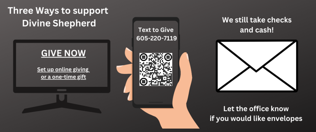Need assistance? Please contact the church office at [605-787-6438 or dslcfinancesec@divineshep.org] and we’ll be happy to help you make the transition